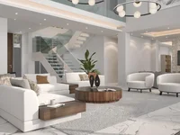 Suelos de gres porcelánico de primera calidad, dimensiones 120x120cm, imitación mármol. Dormitorios, baño principal y distribuidores superiores serán de MADERA LAMINADA de primera calidad, color roble blanco.