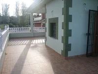 Villa de estilo mediterráneo con 3 dormitorios, 4 baños, salón con chimenea, gran cocina, terraza, garaje doble, jardín privado con piscina y plaza de aparcamiento.