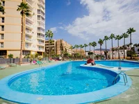A beautiful, reformed apartment in Torres De Yomely in the heart of Playa De Las Americas sea and mountain views and only 150 m from the beach and promenade. The property comprises of 1 bedroom with fitted wardrobes and bathroom. There is a fully equipped American style kitchen and lounge/dining area with patio doors leading onto the terrace with sea and mountain views. The property is in excellent condition. The complex has a communal pool with plenty of sunbathing areas and community parking and is close to all amenities.