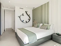 El interior de la villa está equipado con las más modernas comodidades para garantizar una experiencia de vida de alta calidad. Cuenta con cuatro dormitorios y seis baños, ofreciendo un amplio espacio para toda la familia. El suelo de gres porcelánico aporta un toque de elegancia y durabilidad. La villa está equipada con aire acondicionado y calefacción por suelo radiante, asegurando el confort térmico durante todo el año. Las persianas eléctricas y el videoportero añaden un nivel extra de comodidad y seguridad. Además, la propiedad incluye electrodomésticos de alta gama y un sistema de domótica que facilita el control de las funciones del hogar. Los armarios empotrados proporcionan un espacio de almacenamiento eficiente y ordenado.