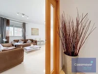 Su genial distribución permite separar las estancias de forma eficiente. Encontrarás un amplio hall de entrada, que te dará acceso al salón-comedor ubicado en esquina, desde el cual podrás salir a la enorme terraza que bordea la vivienda. Junto al salón tendrás la gran cocina muy espaciosa con galería incorporada, totalmente equipada con electrodomésticos nuevos (nevera, horno, vitrocerámica, lavavajillas y lavadora-secadora). En la cocina verás una zona destinada al desayuno con una mesa-cajón extraible para comenzar el día con energía. Desde el hall de entrada también accederás a un baño completo con plato de ducha. En cuanto a los dormitorios, contarás con 3 grandes dormitorios todos ellos con armarios empotrados, y un baño completo con bañera ubicado en suite, para la habitación principal. En total son 3 dormitorios y 2 cuartos de baños completos, ideal para familias con niños y práctico para recibir grandes celebraciones.