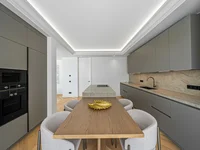 Entrando en la villa, la planta principal tiene un gran espacio dividido en varias áreas. La cocina totalmente equipada con electrodomésticos de última generación tiene una isla hecha a medida.