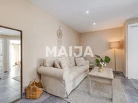 Arriba hay tres amplios dormitorios, otro cuarto de baño con estilo y un acogedor salón con acceso a otra terraza soleada, aquí la luz del día le deleitará de mañana a noche. Además, usted tiene a su disposición una llamada sala de servicios, desde la cual hay un pasaje independiente al espacio de almacenamiento en la terraza.