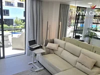 Dispone de una terraza de 8 m² con agradables vistas a la piscina y a las zonas ajardinadas, equipada con toldo eléctrico, ideal para disfrutar del clima del sur de Tenerife.
