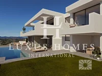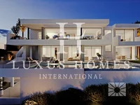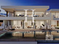 Amplia villa de lujo con gran terraza en la azotea, piscina privada, jardín e impresionantes vistas al mar, ubicada cerca de la playa.