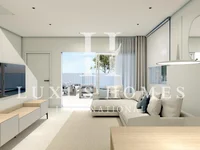 Moderna casa adosada de playa con piscina privada, terraza en la azotea y vistas al mar junto a la playa