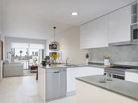 El interior de las viviendas está cuidadosamente diseñado para ofrecer confort y estilo. Los suelos de gres porcelánico aportan un toque moderno y son fáciles de mantener. Todas las propiedades están equipadas con armarios empotrados, optimizando el espacio de almacenamiento. La preinstalación de aire acondicionado asegura un ambiente agradable durante todo el año. Las opciones de distribución incluyen viviendas de 1, 2 y 3 dormitorios, con 1 o 2 baños, adaptándose a diferentes necesidades familiares.