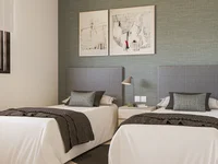 El interior de los bungalows está diseñado para ofrecer el máximo confort y funcionalidad. Las opciones de distribución incluyen 2 o 3 dormitorios y 1 o 2 baños, adaptándose a diferentes necesidades familiares. Las propiedades están completamente amuebladas y equipadas con electrodomésticos modernos. El suelo de cerámica y gres porcelánico aporta un toque de elegancia y durabilidad. Además, cuentan con aire acondicionado, calefacción por suelo radiante y persianas eléctricas, garantizando un ambiente confortable durante todo el año. Los armarios empotrados ofrecen un espacio de almacenamiento eficiente, mientras que la instalación para cargar coches eléctricos añade un toque de modernidad y sostenibilidad.