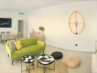 La planta baja tiene un gran salón / comedor, con ventanas de cuerpo entero que le dan acceso a su terraza, una cocina abierta completamente amueblada con una isla de cocción, un cuarto de servicio, un aseo de invitados y el primer dormitorio con baño privado. -baño completo.