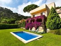 Unusually cozy villa with a beautiful view of the sea and pine trees. The villa is made in a modern style and is conveniently located on a hill in the quiet urbanization of Lloret de Mar (1 hour from Barcelona airport and 30 minutes from Girona airport) 2 km from the beach.