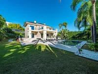 Construida sobre una parcela de 1.233 m², la villa ofrece una superficie construida de 526 m² distribuidos en tres niveles. Dispone de 6 dormitorios y 6 baños, salón principal de diseño contemporáneo con grandes ventanales y acceso a una amplia terraza cubierta, cocina moderna totalmente equipada, gimnasio privado, garaje con capacidad para varios vehículos, dos trasteros y sala de máquinas.