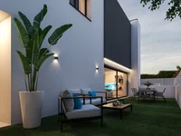 MODERN TOWNHOUSE WITH GARDEN AND SOLARIUM Private urbanization of townhouses, with an area of 100 m2 with private garden and parking. They have 2 floors, on the ground floor there is a large living room with a fully equipped open kitchen, a bathroom, exit to the terrace and parking for 2 cars. On the upper floor are the 3 bedrooms with 2 more bathrooms, one of them en suite and another terrace that is accessed from the main room. There is also access to a private solarium with great unobstructed views. The residential has common green areas, playgrounds and a community pool. 1.5 km from the center of Denia and the beach, in a quiet residential environment where many residents live all year round.