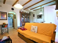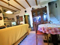 Al entrar en la propiedad, encontrará un salón abierto con zona de comedor, que ofrece una chimenea de leña, aire acondicionado y una sensación de tradición gracias a las vigas de madera en el techo.
