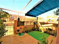 Esta propiedad, y situada en una calle peatonal, ofrece una terraza delantera equipada con toldos, una pequeña zona verde (Césped Sintético) y mucho espacio para disfrutar de la vida y las comidas al aire libre, pero de fácil mantenimiento.