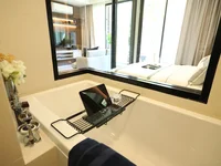 El proyecto en Bang Tao Beach incluye no solo un condominio, sino también todo un ecosistema: un club de playa ubicado directamente en Bang Tao Beach, un hotel de villas justo detrás, un clásico hotel de cinco estrellas, un complejo de villas de inversión y, finalmente, el condominio. Así, So Origin se encuentra a solo 400 metros de la playa, pero esos 400 metros son parte de un solo proyecto y una infraestructura unificada.