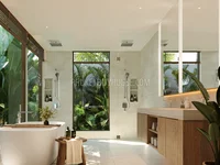 3. Modern Tropical Elegancia: Sumérgete en lujo tropical contemporáneo con dos dormitorios principales en cada villa, todos en suite con armarios empotrados. Los techos de salón y comedor alcanzan un impresionante 4.5m, adornado con techos artesanales de madera de teca.
