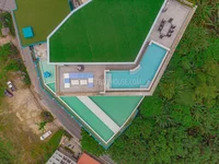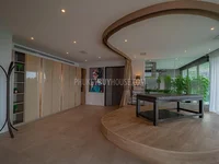 La planta superior del ático tiene una amplia y abierta cocina de estilo occidental y salón que conduce a una terraza a través de grandes puertas correderas. La terraza se extiende alrededor de toda la propiedad y tiene una gran piscina infinita con una hermosa vista. El nivel inferior tiene un salón de planta abierta y dos dormitorios con grandes ventanales que permiten mucha luz natural en la propiedad.
