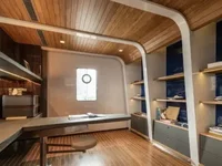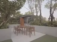 Penthouse in Central Phrom PhongThis 388 sqm condo offers three bedrooms and four bathrooms, so it's perfect if you want plenty of space and privacy for everyone. The bedrooms feel generous and well-lit, thanks to the floor-to-ceiling windows with horizontal blinds that let in natural light but also offer control over your privacy.Indoor Meets OutdoorOne of the standout features is the outdoor dining area. It’s got a charming wooden dining table with six matching chairs, nestled among lush greenery and several trees. The patio, enclosed by low concrete walls and featuring concrete flooring, creates a peaceful and private outdoor spot right at home. There's even a small adjoining shed for extra storage or flexibility.Elegant, Practical FinishesInside, the design uses a neutral palette, mixing dark marble with white veining and warm wood textures, which gives it a refined yet inviting feel. The bathrooms are especially impressive: think freestanding round white bathtubs with gold faucets, large marble tiles, floating vanities, and clever recessed lighting. The master bath has a classy glass partition and backlit mirrors that make the space feel modern but serene.Overall, this place balances luxury, comfort, and privacy in a bustling Bangkok neighborhood—definitely worth seeing if you want something spacious with a great indoor-outdoor flow.