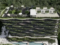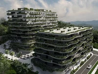 The residences offer a variety of layouts, including studios (34–39 sq m), 1-bedroom (57–86 sq m), 2-bedroom (108–127 sq m), and spacious 3-bedroom units up to 186 sq m. The design emphasizes natural materials and modern aesthetics, creating a harmonious blend of comfort and style.