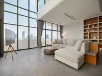 3+1 Cama, 4 Baño, Planta alta 26+27 Tamaño: 473 m2 Venta: THB 94,000,000 Tasa de transferencia: 50/50 Freehold y FQ. Situado sobre el animado distrito de Thonglor, este exquisito ático dúplex ofrece un raro santuario donde la arquitectura moderna se encuentra con la naturaleza exuberante. Rodeado de balcones en todos los lados, ofrece una excepcional experiencia de vida interior en el corazón de Bangkok. El soaring salón de doble altura sirve como el centro de la casa, con impresionantes fachadas de vidrio de casi siete metros de altura que dan a luz natural impresionante y enmarcan vistas expansivas de los horizontes de Thonglor y Sukhumvit. Una estantería inteligentemente integrada oculta una puerta secreta al dormitorio de invitados, añadiendo un elemento de intriga. Tanto los dormitorios como los segundos en el nivel inferior cuentan con elegantes baños en suite terminados con azulejos de estilo travertino atemporal. Una declaración arquitectónica en sí misma, la escalera en forma de L está enmarcada por sutiles aletas de aluminio LED y vegetación en cascada, estructura de fusión perfecta con la naturaleza. Arriba, una galería abierta con vistas a la sala de estar, que ofrece un espacio versátil adecuado para una oficina, salón privado, exposición de arte o gimnasio en casa. Adjacent se encuentra un acogedor dormitorio de planta alta que exuda tranquilidad. La suite principal corona la planta superior, un retiro privado con un amplio walk-in closet, lujoso baño en suite, y acceso directo a un jacuzzi al aire libre con impresionantes vistas al skyline de Bangkok. Papel pintado italiano, un techo de madera parecido a cúpula, y un jardín privado con un árbol crean un ambiente de estilo resort. A continuación, la cocina de planta abierta cuenta con una impresionante encimera de granito verde e isla — ideal para entretener— mientras que el comedor ofrece amplias vistas panorámicas de Thonglor. Apoyando esto, la cocina de una criada dedicada y los cuartos con una entrada independiente aumentan la funcionalidad. A lo largo, tonos cálidos, madera natural, acentos de latón y abundante vegetación crean un ambiente acogedor y contemporáneo, un lujoso paraíso urbano de la selva en la ciudad.