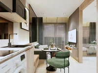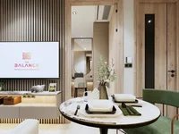 Instalaciones: piscina de varios niveles con zonas de salón, sala de fitness con vistas, onsen, spa, co-working, biblioteca, zona de mascotas, BBQ-zona, zona de azotea con panorama, aparcamiento subterráneo, seguridad 24 horas, videovigilancia, recepción.
