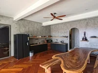 Zona de Recreación y terraza • Piscina de agua salada con Jacuzzi incorporado • Amplia terraza junto a la piscina para relajarse y tomar el sol • 4 terrazas: 1. Terraza en piscina 2. Terraza en el patio trasero de la casa principal 3. Terraza en el segundo piso con hermosa vista al mar 4. Terraza para la casa de huéspedes • Zona de jardín cerrada y totalmente vallada • Diseño de paisaje alrededor del perímetro de la propiedad • Sistema de riego automático Interiores y acabados • Pisos de madera en ambos pisos de la casa principal • Puerta de entrada hecha de madera natural • La mayoría de los muebles a medida de una variedad de madera, el resto de IKEA • Mesa de comedor de diseño grande, hecha a mano de madera natural • Ventanas panorámicas y acceso a las terrazas con vistas a la vegetación Garaje con puerta eléctrica 1 coche.
