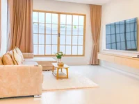 The house features a large living room that works well for both relaxation and entertaining. In addition, the European kitchen connects smoothly with the dining space, creating an open and practical flow. A separate Thai kitchen is also included, which adds flexibility for daily cooking. Furthermore, the layout allows easy movement between all areas of the house.