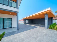 5 Bedrooms House in East Pattaya for Sale - This 5-bedroom, 4-bathroom house in East Pattaya offers a generous 440 sqm land plot and 270 sqm of usable area. The property comes fully furnished with high-quality built-in furniture throughout, providing both style and functionality. The European-style kitchen is designed for convenience and is perfect for preparing meals. The house also features a private 7x4 meter swimming pool and a beautifully landscaped garden surrounding the property, offering a peaceful and relaxing environment. With parking for 3 cars and a remote-controlled gate, the property ensures both security and convenience. This home is a fantastic opportunity for family living or investment in a highly desirable area of East Pattaya.