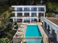 La villa con vistas panorámicas al mar está situada en un terreno de 1200 m². Hay una piscina de 45 m² y una casa de invitados independiente de 1 dormitorio en el jardín de la villa. En el diseño interior, la villa consta de 3 plantas. En la planta baja hay una cocina abierta y una gran sala de estar. En la planta de la piscina hay una sala de estar, un dormitorio con baño en suite y un baño de invitados. En la planta superior hay 4 dormitorios, dos de ellos con baño en suite, y un baño compartido. Todos los pisos de la villa son de mármol y hay un generador y un tanque de agua de 60 toneladas en total. La villa ofrece una estancia cómoda a sus residentes con sus amplios espacios y materiales de primera clase.