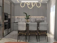 El diseño de la villa 5+2 con una superficie de 350 m2 permite alojar 5 dormitorios, 2 salones, uno de los cuales se combina con la cocina, vestidores, 4 baños.