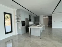 Dentro: La zona de estar de la villa es de 680 m2 y tiene un diseño de 5 + 2. Cada uno de los cinco dormitorios tiene su propio vestidor y baño. Hay 7 baños en la casa. La villa incluye 2 espaciosas salas de estar con una cocina americana, donde todos los electrodomésticos ya están instalados. Un sistema centralizado de aire acondicionado y calefacción se realiza en toda la casa, que es una opción más saludable en comparación con los acondicionadores de aire tradicionales, así como suelos calentados. Para vivir cómodamente y descansar en la casa hay un hammam turco, sauna y gimnasio. El punto culminante del proyecto es el sistema Smart Home de alta tecnología.