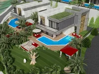 Villa en una parcela de tierra con un área total de 657 sq. m. .m., La sala de estar de cada villa es de 238 metros cuadrados .., cada villa incluye 4 dormitorios y 1 sala de estar. 524 Sq.M.