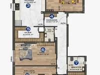 Los apartamentos en venta de tres dormitorios cuentan con una amplia sala de estar, una cocina cerrada con despensa, un baño, un baño en suite y un balcón. Construidos con materiales de alta calidad, los apartamentos están equipados con iluminación LED en el techo, cabina de ducha, cocina equipada con tres electrodomésticos, sistema central de satélite, muebles de lavandería, armario, suelos laminados de primera calidad y suelos de baldosas en las zonas húmedas.