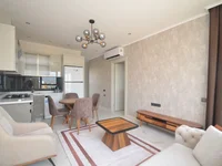 Dentro: muebles elegantes, electrodomésticos, diseño conveniente 2+1, salón luminoso, dos dormitorios acogedores, baño equipado y aseo de invitados, balcón con vistas al mar y el territorio del complejo, acabado limpio y agradable decoración interior