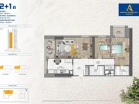 Situado en una zona de 8.980 m2, el complejo consta de dos bloques, 21 y 31 pisos de altura, con un total de 317 apartamentos, que van desde 1+1 hasta 2+1.