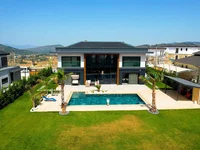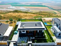 La villa consta de 5 dormitorios, salón, cocina americana, baños en suite en cada dormitorio, terraza y un amplio jardín privado. El interior cuenta con materiales de alta calidad, como ventanas de aluminio, suelos laminados y cerámicos, aire acondicionado de techo, electrodomésticos integrados y una puerta exterior de acero con lector de huellas dactilares y lente, y cámara.