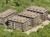El complejo, compuesto por cuatro bloques independientes y un total de 60 apartamentos, cuenta con baño turco, gimnasio, sauna, servicio de seguridad 24/7 y sistema de cámaras de seguridad. Una piscina exterior, una piscina infantil, parques infantiles, senderos para caminar y amplias zonas ajardinadas ofrecen un ambiente espacioso y agradable. Además, el proyecto cuenta con modernas comodidades, como una estación de carga para vehículos eléctricos, y está diseñado para ofrecer a los residentes un estilo de vida cómodo y privilegiado.