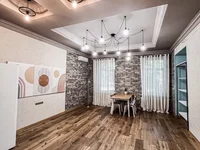 En el interior del apartamento se utilizan tablas de parquet de roble en el suelo. Los muebles de cocina están hechos de madera de roble con herrajes italianos. Se han realizado reparaciones de alta calidad utilizando materiales caros.