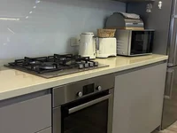 En el primer nivel hay un dormitorio con acceso a balcón, un baño y salón-cocina - 50 m2, desde la cocina se accede a una terraza amueblada - 30 m2.