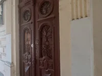 Puerta de entrada antigua. El rellano es de mármol, limpio y espacioso.