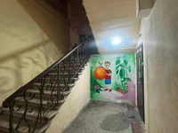 Puerta de entrada limpia y cerrada. Hay un balcón compartido en el piso.