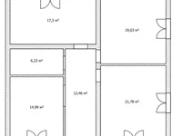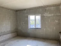 Una nueva casa, luz y agua son llevadas a la casa, una zona residencial y edificada, buenas ventanas de metal-plástico, un borrador del suelo, se realiza alcantarillado.