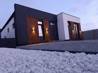 Proyecto moderno. Área total de 119 metros cuadrados Planeado para la cocina-estudio y tres habitaciones separadas. Dos baños. Acristalamiento panorámico. Perfil de 5 cámaras, ventana de doble acristalamiento de 2 cámaras. Cocina con acceso al patio trasero. Zona de barbacoa. La fachada está enfrentada.