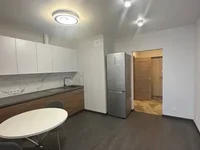 Total 30m2, Cocina es un estudio con reparaciones europeas y electrodomésticos. El apartamento está equipado con todo lo necesario, panel de cocina, nevera, lavadora, TV, aire acondicionado, muebles en la cocina. La casa tiene un área protegida, alarma de incendios, videovigilancia, tecnología inteligente hogareña.