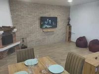En el patio, un baño de leña, un gazebo, una zona de barbacoa.
