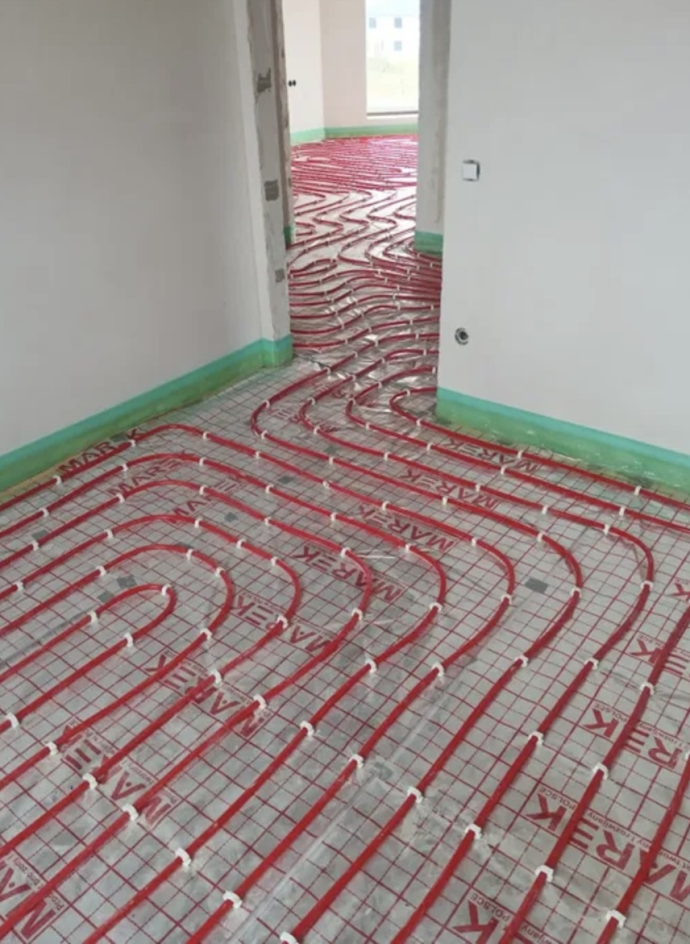 Estado de los constructores. Todo trabajo duro en el cableado de electricistas, plomería, alcantarillado se completó. Piso caluroso. Caldera de gas y electricidad.