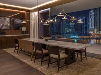 Complejos Lana Residences, Dorchester Collection, Dubái, antes de dos hoteles широкий спектр роскошных условий для жизни и отдыха, включая открытый бассейн с видом на потрясающий городской пейзаж, полностью оборудованный тренажерный зал со студиями йоги, столовую и банкетный зал с конференц-залами и лаунджем.