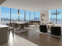 - ventanas panorámicas de tres metros que ofrecen vistas al mar, el club de yates y el horizonte de la ciudad.