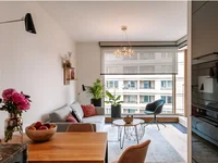 El apartamento con una superficie de 46 metros cuadrados. consta de 2 habitaciones - un acogedor dormitorio con una cama grande y un amplio armario y un amplio salón con una esquina de cocina; una cocina totalmente equipada (nevera, estufa, lavavajillas, hervidor de agua); baños con una gran cabina de ducha y amplios armarios para guardar cosas. El apartamento tiene una legia conveniente con vistas al Castillo Real y Dinasi, así como el Parque Krasitsky.