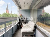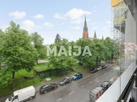 Located on the 4th floor, this home charms with its elegance. In the apartment you will find a spacious bedroom with cupboards, a bright living room with access to a glazed balcony. The balcony offers stunning views directly to Mannerheim Park and St. Michael's Church. The kitchen has been updated in the next few years with style. The bathroom is quite large, where laundry service can be done without worry.